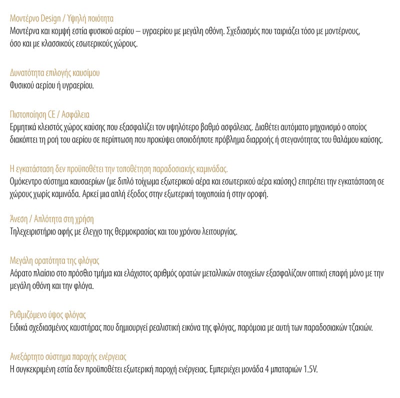 With its panoramic fire view, discreet facade frame, and minimal external elements, the Leo series places the fire at the forefront. Designed to burn LPG gas (from cylinders), this fireplace combines modern efficiency and style. It seamlessly integrates into any interior while maximizing energy use with gas fireplace solutions in Cyprus.