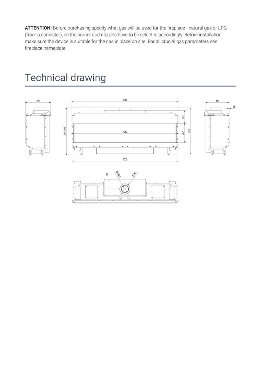 Before purchasing, confirm whether you will be using natural gas or LPG (from a canister), as the burner and nozzles need to be selected accordingly. Ensure that the fireplace is compatible with the gas available at the installation site. For critical gas parameters, refer to the fireplace nameplate.